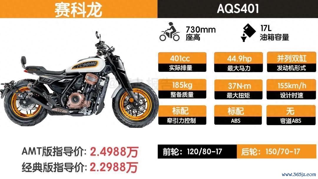 赛科龙备受激情的自动挡摩托AQS401发布了,AMT版开拓价为2.4988万,经典版开拓价为2.2988万。当今限时优惠1000元,得手价永别为2.3988万和2.1988万,不错看出这个售价很有针对性。