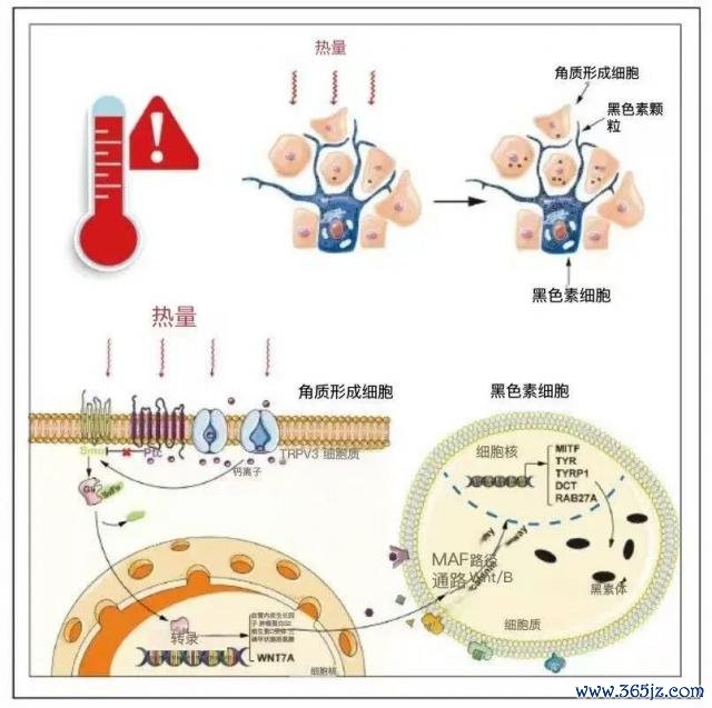 即便在莫得紫外线的情况下,高温也会让皮肤里的角质形成细胞产生「受伤」的错觉,并留心性地分泌多种促黑素合成因子,促进玄色素生成,最终导致皮肤变黑。 [ 3 ]
