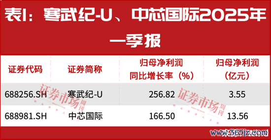 从最近股价大涨的几泰半导体龙头来看,多为功绩弘扬向好,如海光信息本年中报净利润增长超40%,寒武纪-U、中芯海外一季报均已毕翻倍增长(见表1)。