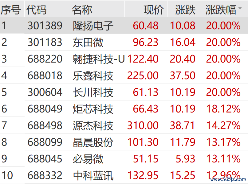 隆扬电子、东田微、翱捷科技、乐鑫科技等多股走出20cm涨停,瑞芯微、正大科技、旭光电子等涨停。