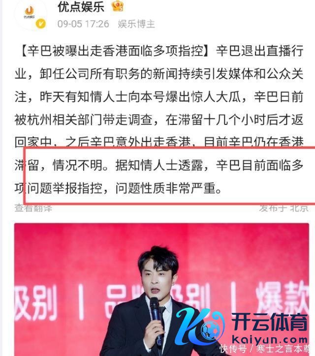 退网半个月的辛巴疑似又闹了个见笑,有网友爆料,他疑似被杭州关系部门带走造访了十几个小时,随后很快就跑路去了香港。 但把柄爆料,他背着十几项指控,在香港也不一定能过的平缓。 六天前,辛巴还在直播间连线初瑞雪开云体育(中国)官方网站,在线教初瑞雪直播,足够莫得照旧退网的自愿。 他的连线对初瑞雪有很大匡助,但也有网友直言他太过分,从来没见过哪个主播退网退的那么不干脆,退播了还要带热度。
