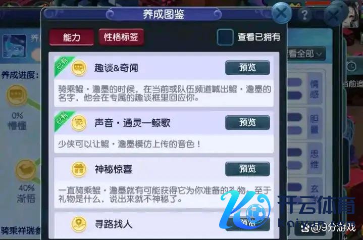 抽到鲲之后,需要对其进行培养,能力获取多样智商,变大变小耸立免死等等。开启培养之后,需要骑乘它参与多样获取训戒或财富的行径,能力获取培养进程,进程到100%的本领算培养完成,除了参与行径还有一种是通过奇闻与鲲对话获取培养进程。